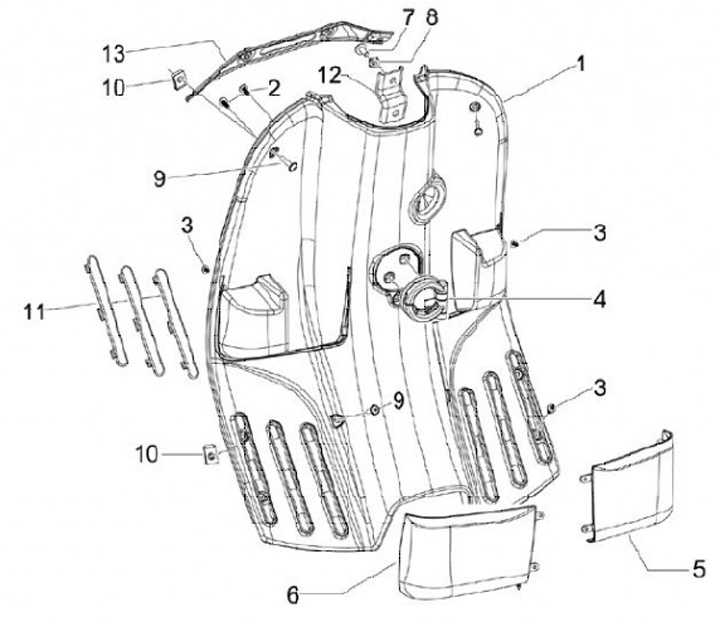 Fäste för benskydd innerpanel topp -PIAGGIO- Vespa S (ZAPC38, ZAPM44, ZAPM68)