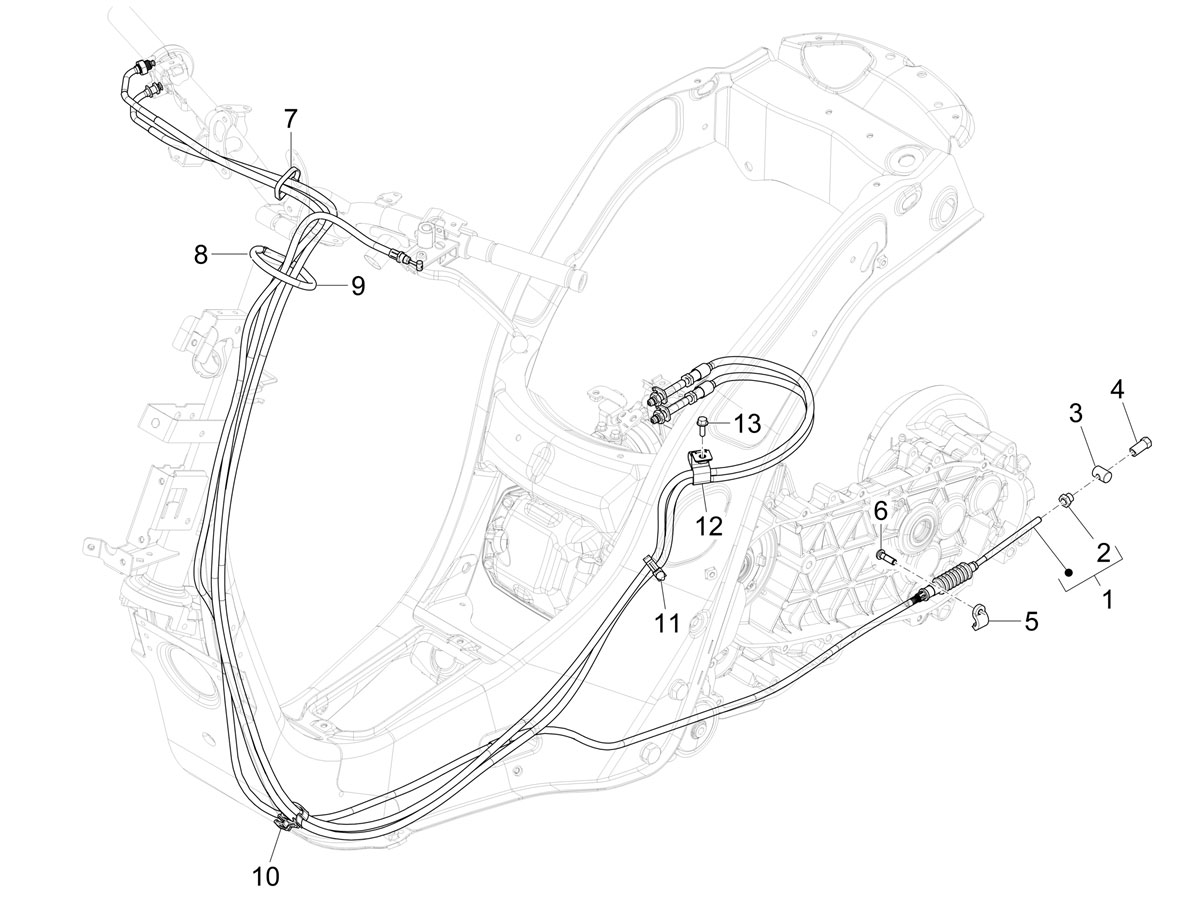 Fästplatta för bakre bromskabel -PIAGGIO- Vespa ET2 50 (ZAPC12000), Vespa ET4 50 50 (ZAPC26000, ZAPC26100), Vespa LX 50 (ZAPC38101, ZAPC38104, ZAPC38300, ZAPC38400, ZAPC38700, ZAPC38900), Vespa LXV 50 (ZAPC38102, ZAPC38902), Vespa Primavera 50 (ZAPC53100)