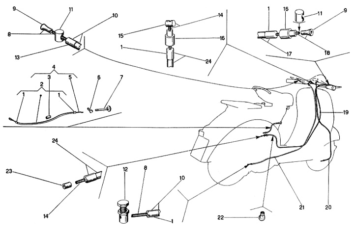 Gummiram/gasolkabel -PIAGGIO- Vespa Largeframe (från 1958)