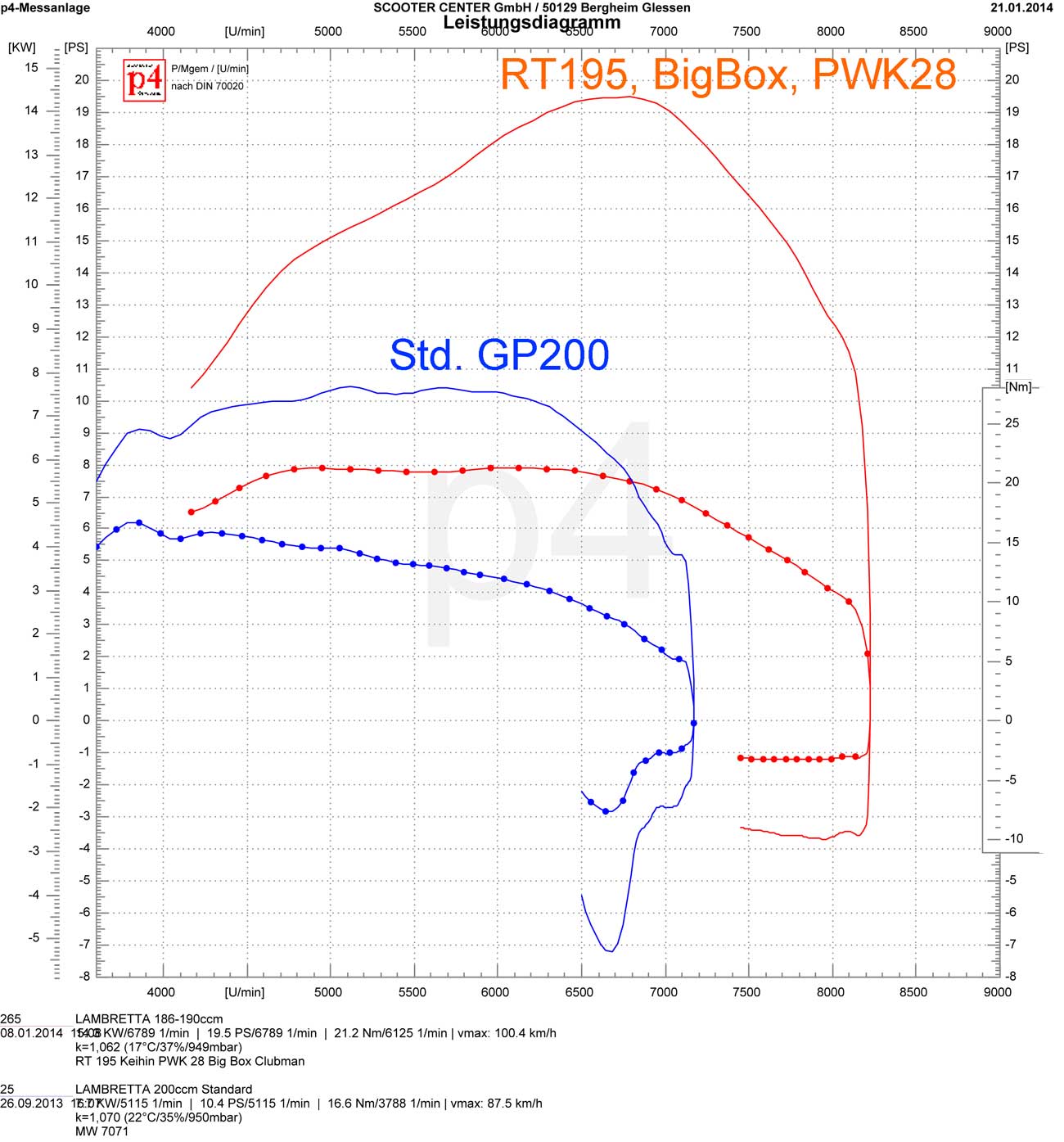 Cylindrarna ger markant högre effekt och därmed bättre körbarhet och ökat körglädje. Effekten kommer tidigt i varvtalsområdet och kiten har tillräckligt med vridmoment för att klara längre utväxlingar. Effekten utvecklas jämnt, så att RaceTour-motorer känns som en original Innocenti 200-motor — men med dubbla effekten.