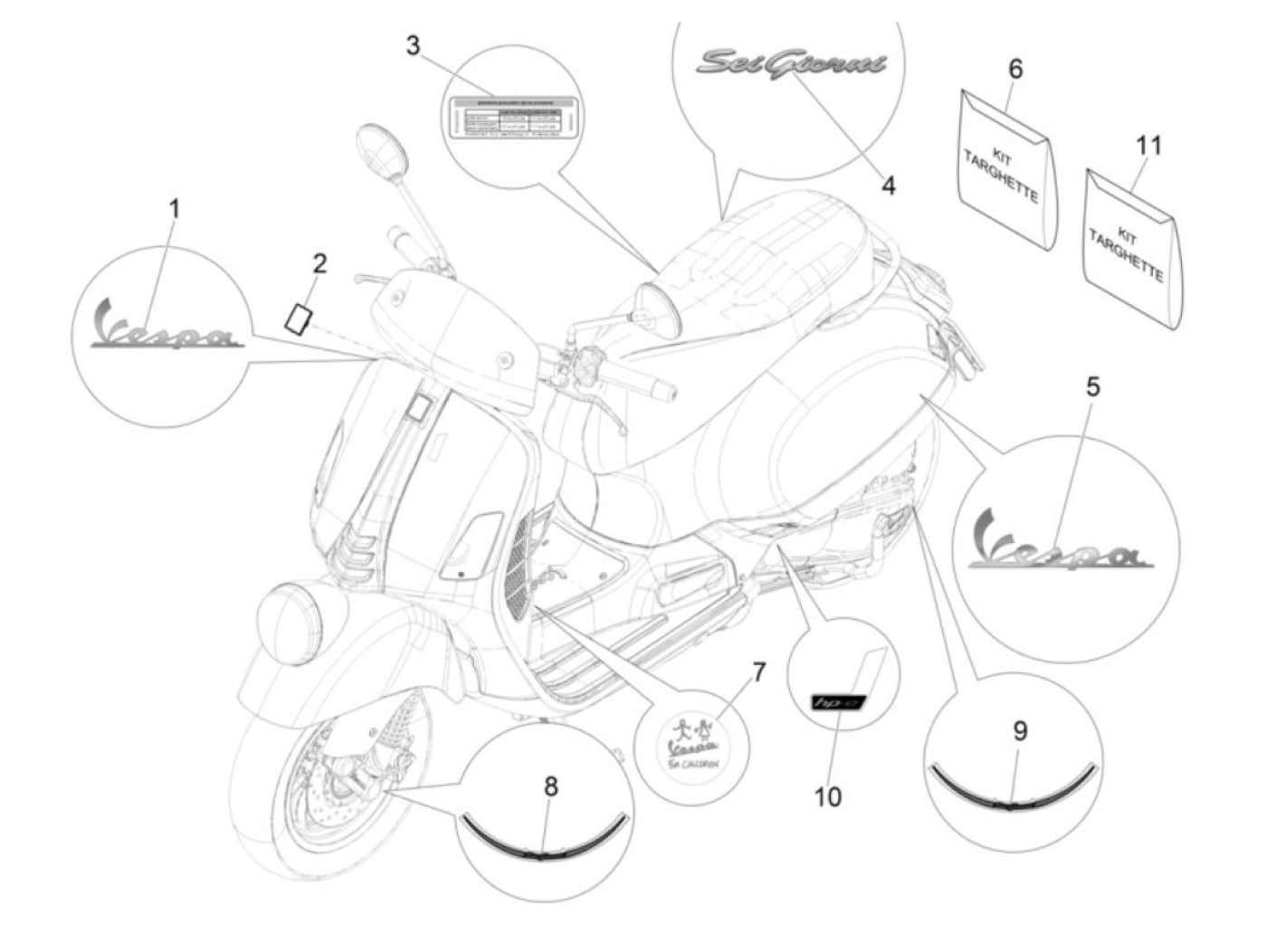 Motoe-bokstäver -PIAGGIO- HPE - Vespa GTS Super HPE 300 (ZAPMD3101, ZAPMD3102, ZAPMD3103)
