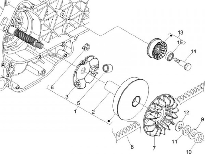 Styrskiva kilrem -PIAGGIO- Vespa GT 250 (ZAPM45102), Vespa GT L 125 (ZAPM31100), Vespa GT L 200 (ZAPM31200), Vespa GTS 250 (ZAPM45100, ZAPM45101), Vespa GTS 300 (ZAPM45200, ZAPM45202, ZAPMA3300), Vespa GTS Super 300 (ZAPM45200, ZAPM45202, ZAPMA330)