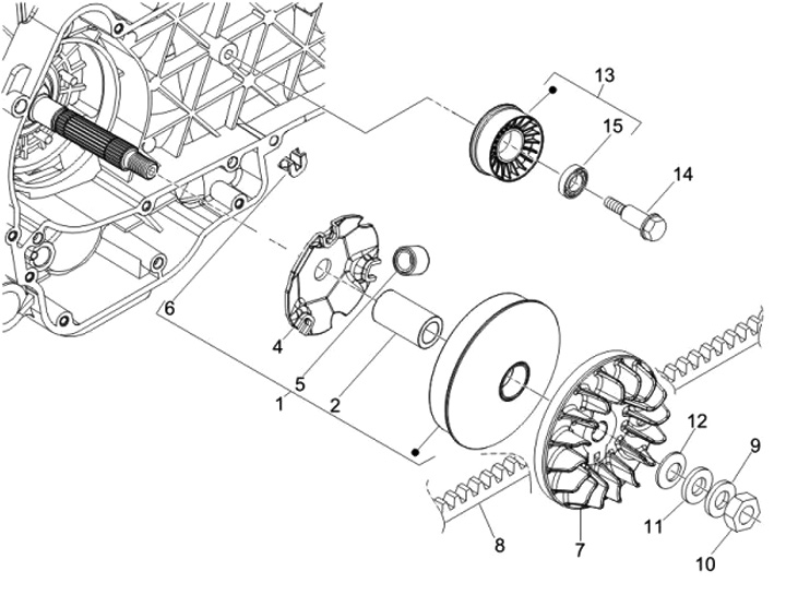 Variator -PIAGGIO- Vespa GT 250 (ZAPM45102), Vespa GTS 250 (ZAPM45100, ZAPM45101), Vespa GTV 250 (ZAPM45102), Aprilia Atlantic 250 (ZD4SPB), Aprilia Scarabeo 250 (ZD4TDB, ZD4TDC), Aprilia Sport City 250 (ZD4VBB00), Aprilia Sport City Cube 250 (ZD4VBH),
