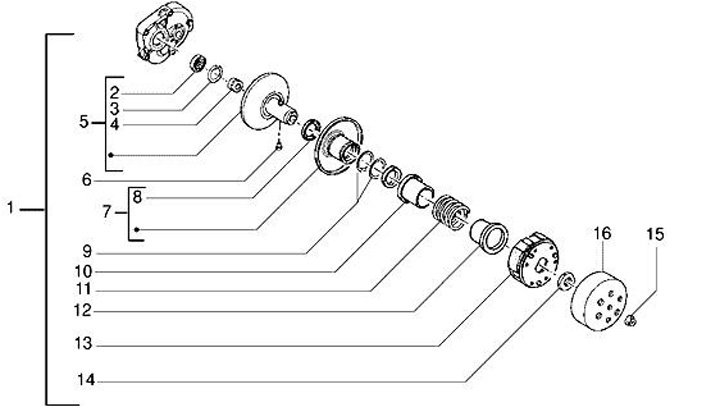 Momentomvandlare med glidande block -PIAGGIO- Piaggio 50 cm 2-takt (utom Sfera (NSL1T) och Zip (SSL1T)), Piaggio 50-100 cm 4-takt