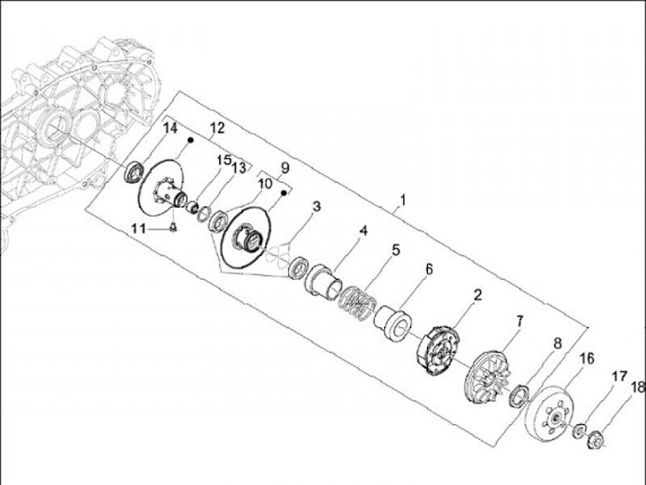 Omvandlarenhet med koppling -PIAGGIO- Vespa GTS 125, Piaggio Beverly 125, MP3 125, X10 125, XEvo 125, Gilera VX 125, Aprilia Sport City Street 125