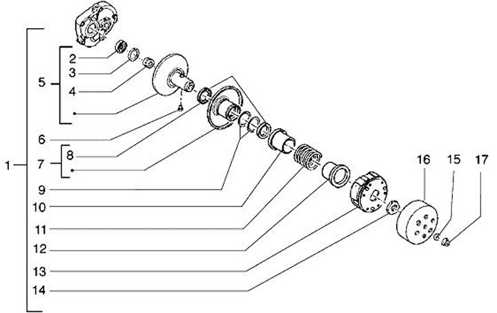 Momentomvandlare med glidande block -PIAGGIO- Piaggio 50 cm 2-takt (utom Sfera (NSL1T) och Zip (SSL1T)), Piaggio 50-100 cm 4-takt