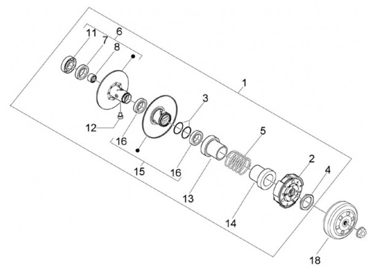 Omvandlarenhet med koppling -PIAGGIO- Piaggio 50 ccm Ø=134mm (från år 2000)