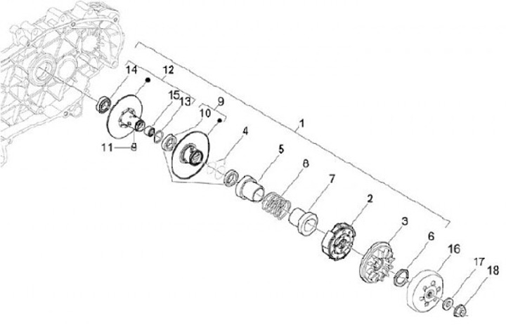 Omvandlarenhet med koppling -PIAGGIO- Vespa GTS 125, Piaggio Beverly 125, MP3 125, X10 125, XEvo 125, Gilera VX 125, Aprilia Sport City Street 125
