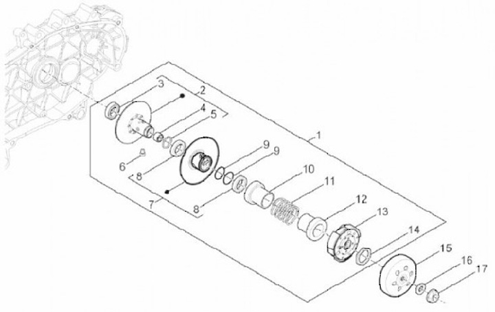 Omvandlarenhet med koppling -PIAGGIO- Vespa ET4 125, LX 125, LXV 125, S 125, Piaggio Fly 125, Liberty 125, Skipper 125, TPH 125, Zip II 125, X8 125, Aprilia Mojito 125, SR Motard 125, Sport City One 125, Derbi Boulevard 125