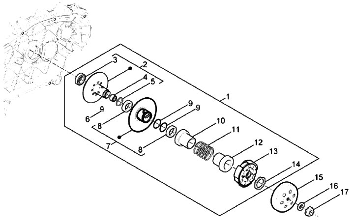 Mottrycksfjäderfäste på momentomvandlarens sida -PIAGGIO- Piaggio Leader 125-150 - Vespa ET4 125-150, GTS 125-150, LX 125-150