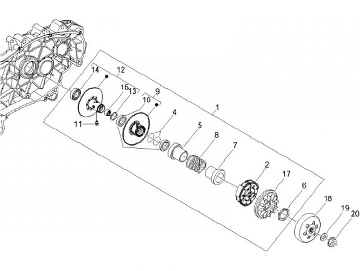 Omvandlarenhet med koppling -PIAGGIO- Vespa GTS 125, Piaggio Beverly 125, MP3 125, X10 125, XEvo 125, Gilera VX 125, Aprilia Sport City Street 125