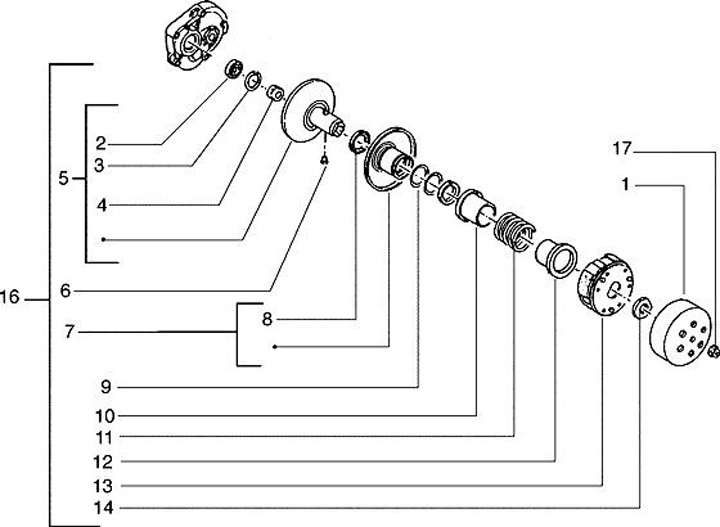 Momentomvandlare med glidande block -PIAGGIO- Piaggio 50 cm 2-takt (utom Sfera (NSL1T) och Zip (SSL1T)), Piaggio 50-100 cm 4-takt