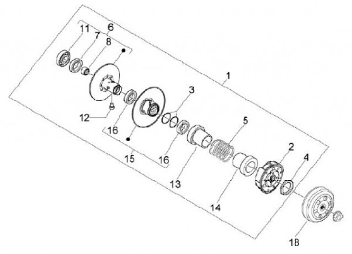 Omvandlarenhet med koppling -PIAGGIO- Vespa ET2 50, ET2 inietione 50, LX 50, LXV 50, S 50, Piaggio Liberty 50, Zip II 50, Fly 100, Free 50, Free 100, TPH 50, NRG MC3 50, Gilera Stalker, Aprilia Scarabeo 100, Derbi Atlantis 100