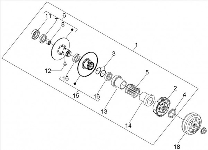 Omvandlarenhet med koppling -PIAGGIO- Vespa ET2 50, ET2 inietione 50, LX 50, LXV 50, S 50, Piaggio Liberty 50, Zip II 50, Fly 100, Free 50, Free 100, TPH 50, NRG MC3 50, Gilera Stalker, Aprilia Scarabeo 100, Derbi Atlantis 100