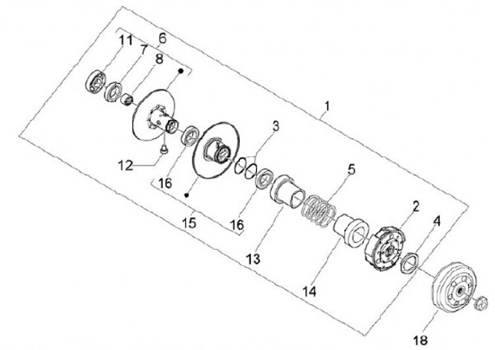 Omvandlarenhet med koppling -PIAGGIO- Vespa ET2 50, ET2 inietione 50, LX 50, LXV 50, S 50, Piaggio Liberty 50, Zip II 50, Fly 100, Free 50, Free 100, TPH 50, NRG MC3 50, Gilera Stalker, Aprilia Scarabeo 100, Derbi Atlantis 100