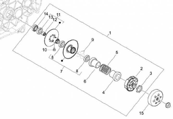 Momentomvandlare med glidande block -PIAGGIO- Piaggio 50 cm 2-takt (utom Sfera (NSL1T) och Zip (SSL1T)), Piaggio 50-100 cm 4-takt