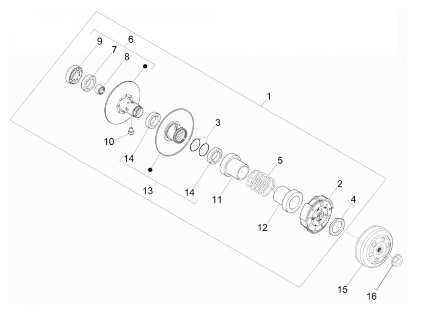 Koppling -PIAGGIO- Vespa Primavera 50 (ZAPC53200), Vespa Sprint 50 (ZAPC53201, ZAPC53301, ZAPC53303), Gilera DNA 50 (ZAPC27000), Gilera Runner 50 (ZAPC14000, ZAPC36100, ZAPC36200, ZAPC36400, ZAPC46100, ZAPC46200, ZAPC46300), Gilera Storm 50 (ZAPC29000), P