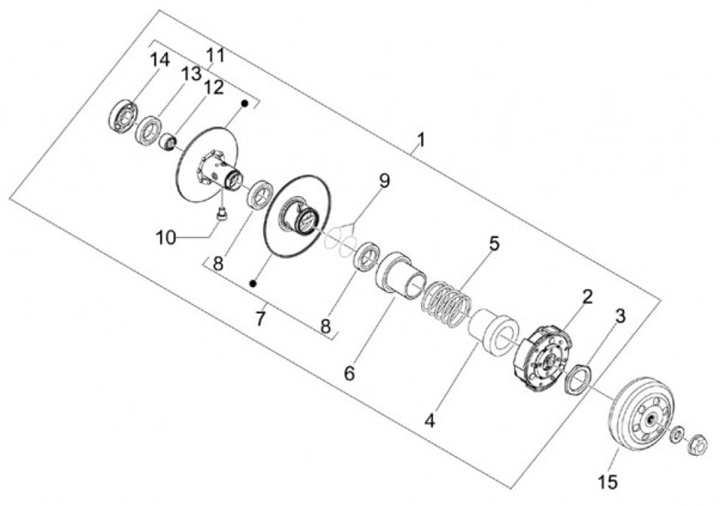 Koppling -PIAGGIO- Vespa Primavera 50 (ZAPC53200), Vespa Sprint 50 (ZAPC53201, ZAPC53301, ZAPC53303), Gilera DNA 50 (ZAPC27000), Gilera Runner 50 (ZAPC14000, ZAPC36100, ZAPC36200, ZAPC36400, ZAPC46100, ZAPC46200, ZAPC46300), Gilera Storm 50 (ZAPC29000), P