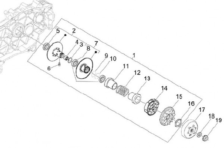 Omvandlarenhet med koppling -PIAGGIO- Vespa GTS 125, Piaggio Beverly 125, MP3 125, X10 125, XEvo 125, Gilera VX 125, Aprilia Sport City Street 125