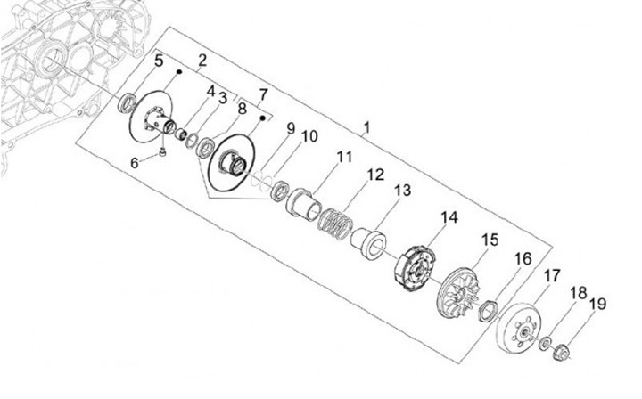 Omvandlarenhet med koppling -PIAGGIO- Vespa GTS 125, Piaggio Beverly 125, MP3 125, X10 125, XEvo 125, Gilera VX 125, Aprilia Sport City Street 125