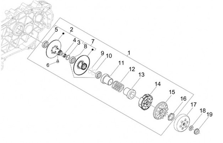 Omvandlarenhet med koppling -PIAGGIO- Vespa GTS 125, Piaggio Beverly 125, MP3 125, X10 125, XEvo 125, Gilera VX 125, Aprilia Sport City Street 125