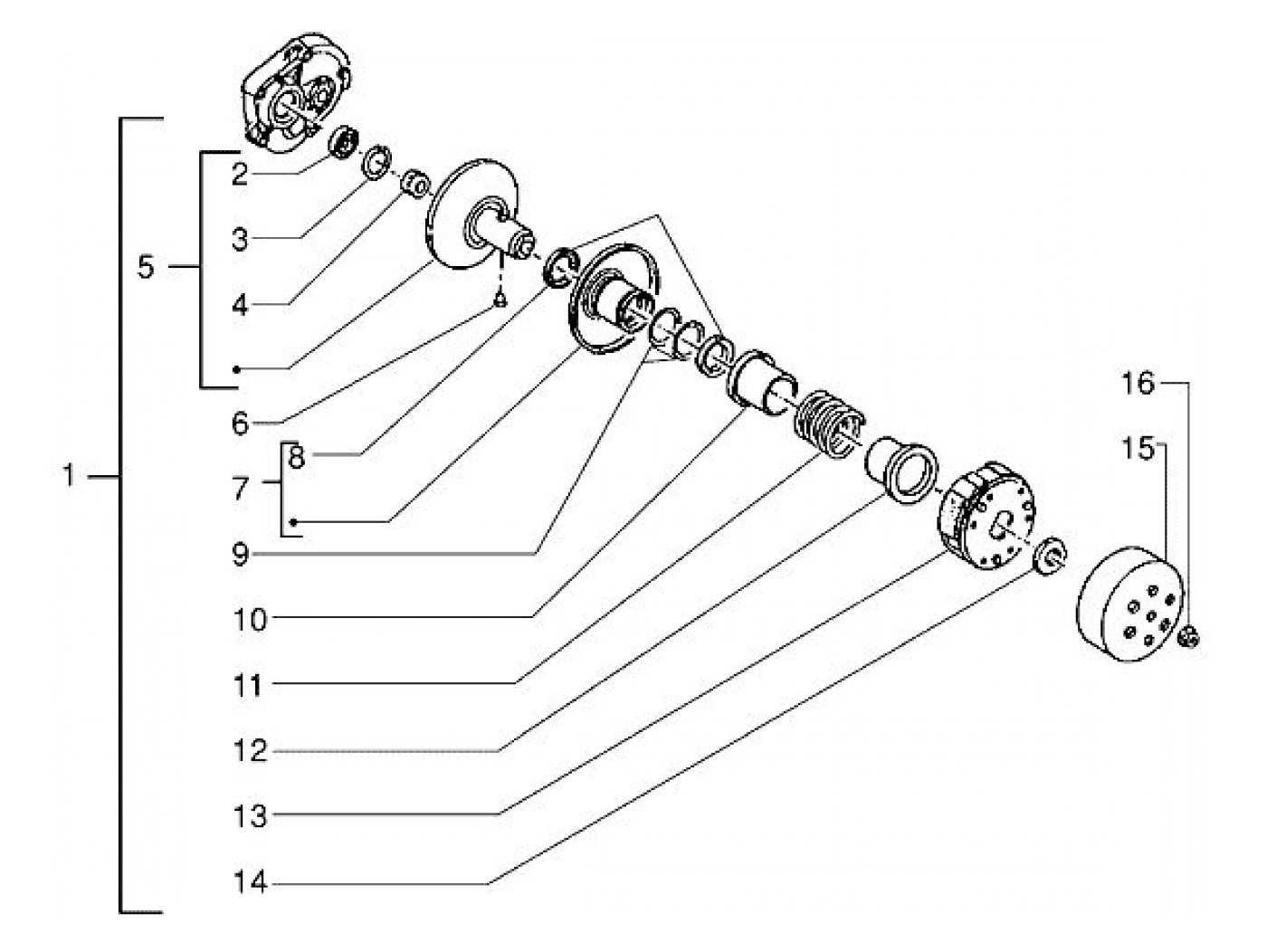 Omvandlarenhet med koppling -PIAGGIO- Vespa ET2 50, ET2 inietione 50, LX 50, LXV 50, S 50, Piaggio Liberty 50, Zip II 50, Fly 100, Free 50, Free 100, TPH 50, NRG MC3 50, Gilera Stalker, Aprilia Scarabeo 100, Derbi Atlantis 100