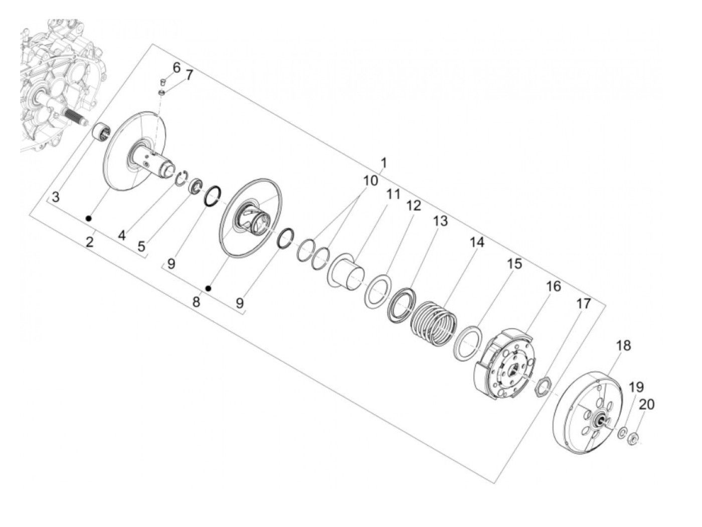 Koppling -PIAGGIO- Vespa GTS 125 (ZAPMD3200), Vespa GTS Super 125 (ZAPMD3200), Piaggio Medley 125 (RP8MB0100, RP8MA0120, RP8MA0131, RP8MA100, RP8MA0111, RP8MD0100), Piaggio Medley 150 (RP8MB0200, RP8MA0210, RP8MA0220, RP8MA0231, RP8MA0200, RP8MA024, RP8MA