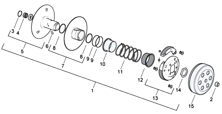 Koppling -PIAGGIO- Vespa Primavera 50 (ZAPC53200), Vespa Sprint 50 (ZAPC53201, ZAPC53301, ZAPC53303), Gilera DNA 50 (ZAPC27000), Gilera Runner 50 (ZAPC14000, ZAPC36100, ZAPC36200, ZAPC36400, ZAPC46100, ZAPC46200, ZAPC46300), Gilera Storm 50 (ZAPC29000), P