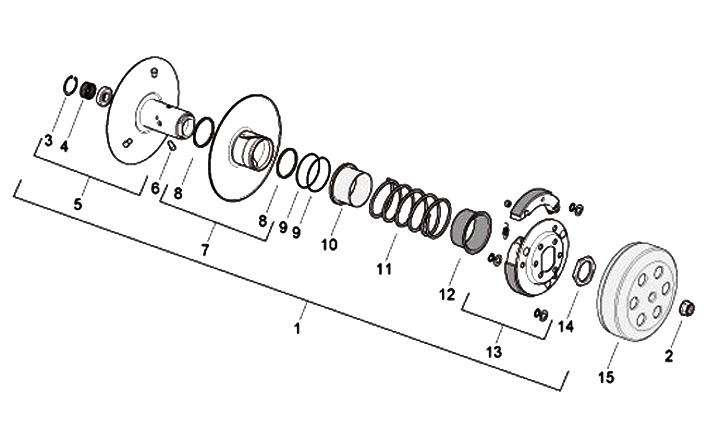 Koppling -PIAGGIO- Vespa Primavera 50 (ZAPC53200), Vespa Sprint 50 (ZAPC53201, ZAPC53301, ZAPC53303), Gilera DNA 50 (ZAPC27000), Gilera Runner 50 (ZAPC14000, ZAPC36100, ZAPC36200, ZAPC36400, ZAPC46100, ZAPC46200, ZAPC46300), Gilera Storm 50 (ZAPC29000), P