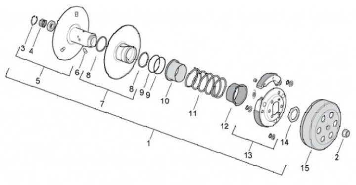 Koppling -PIAGGIO- Vespa Primavera 50 (ZAPC53200), Vespa Sprint 50 (ZAPC53201, ZAPC53301, ZAPC53303), Gilera DNA 50 (ZAPC27000), Gilera Runner 50 (ZAPC14000, ZAPC36100, ZAPC36200, ZAPC36400, ZAPC46100, ZAPC46200, ZAPC46300), Gilera Storm 50 (ZAPC29000), P