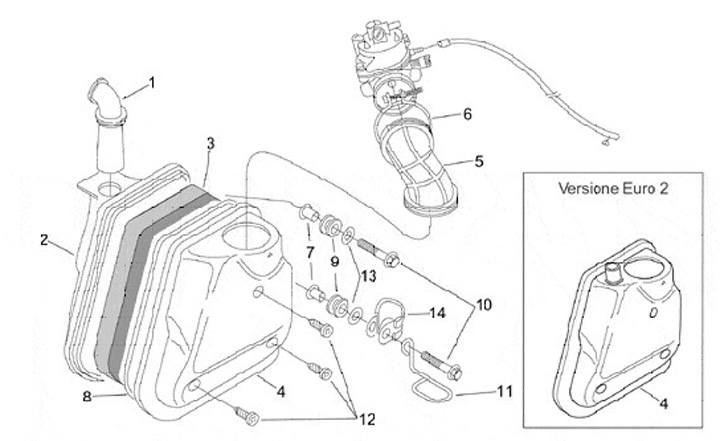 Avgas -TECNO- 'Mopedpott', tjockt grenrör Ø22mm- Piaggio Ciao, Bravo - Svart (lämplig för fordon med mittställning)