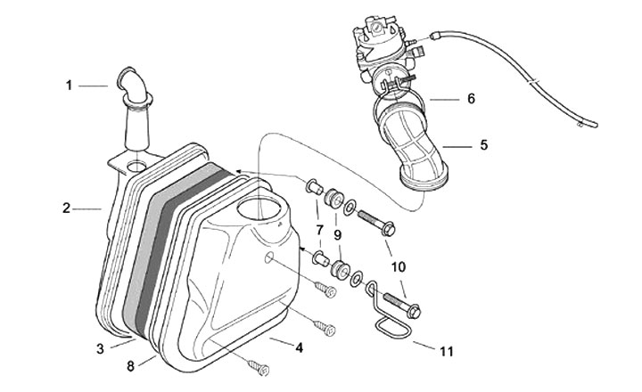 Avgas -TECNO- 'Mopedpott', tjockt grenrör Ø22mm- Piaggio Ciao, Bravo - Svart (lämplig för fordon med mittställning)