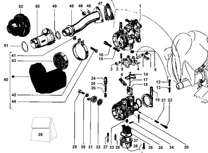 Packningssats förgasare -DELLORTO- SI 18-20-24 Vespa PX80, PX125, PX150, PX200, Sprint, Rally