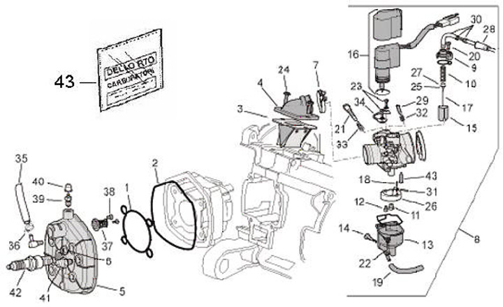 Förgasare -PIAGGIO- Dell'Orto PHVA 17,5 ID- Piaggio Zip SP2, Aprilia SR50 Street, SR50 R, Derbi GP1