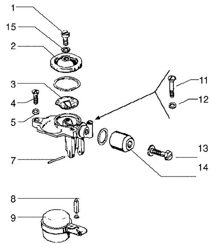 Flottörkammarens täckskruv centrum -PIAGGIO- Förgasare SI DellOrto - SI20/15, SI20/17, SI20/20, SI24/24