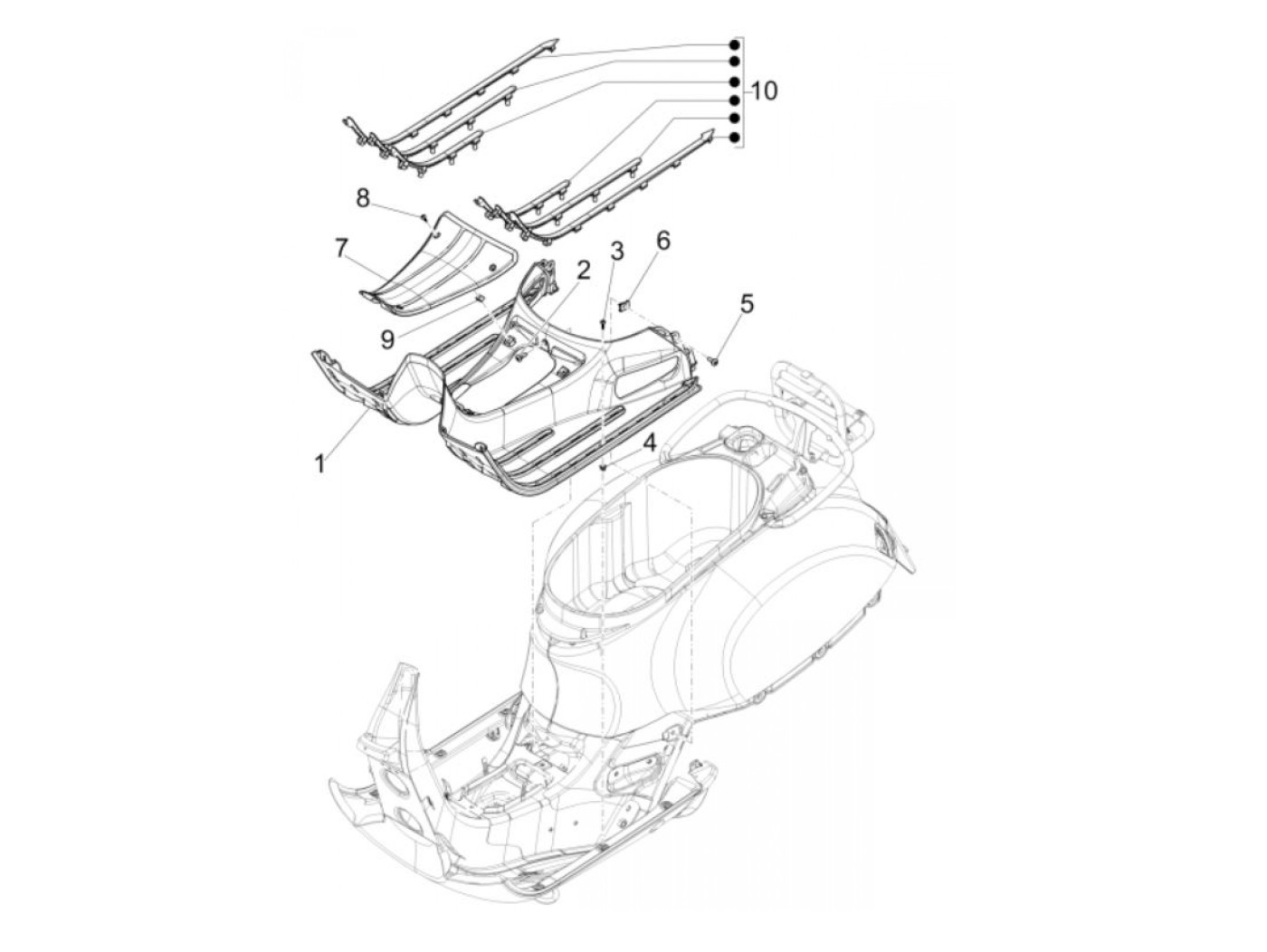 Fotplatta -PIAGGIO- Vespa GT L 125 (ZAPM31101), Vespa GTS 125 (ZAPM31300, ZAPMA3700), Vespa GTS 250 (ZAPM45100, ZAPM45101), Vespa GTS 300 (ZAPM45200, ZAPM45202), Vespa GTS HPE 300 (ZAPMA3600), Vespa GTS Super 125 (ZAPM45300, ZAPM45301, ZAPMA3700), Vespa