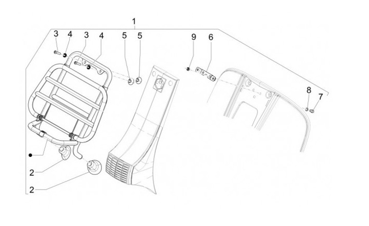 Fästplatta för främre bagagebärare -PIAGGIO- Vespa GTS 300 (ZAPM45200, ZAPM45202), Vespa GTS Super 300 (ZAPM45200, ZAPMA3300), Vespa PX 125 (ZAPM74100), Vespa PX 150 (ZAPM74200)