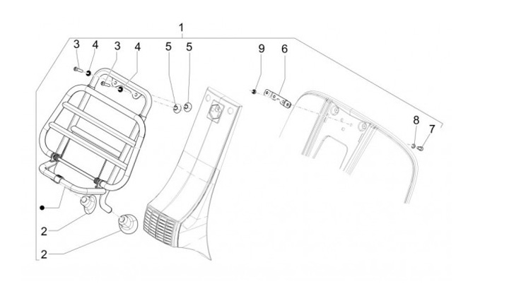 Fästplatta för främre bagagebärare -PIAGGIO- Vespa GTS 300 (ZAPM45200, ZAPM45202), Vespa GTS Super 300 (ZAPM45200, ZAPMA3300), Vespa PX 125 (ZAPM74100), Vespa PX 150 (ZAPM74200)