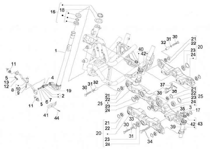Styrlageruppsättning kopplad -PIAGGIO- Gilera Fuoco