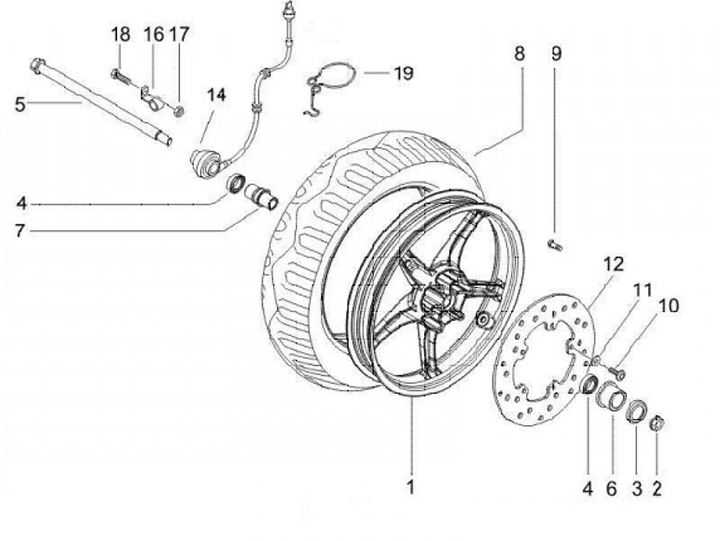 Framhjulsaxel -PIAGGIO- NRG Power (ZAPC45), Gilera Runner (från 2006) (ZAPC46, ZAPM46)