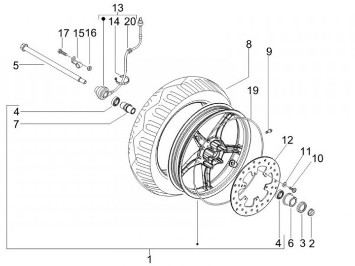 Framhjulsaxel -PIAGGIO- NRG Power (ZAPC45), Gilera Runner (från 2006) (ZAPC46, ZAPM46)