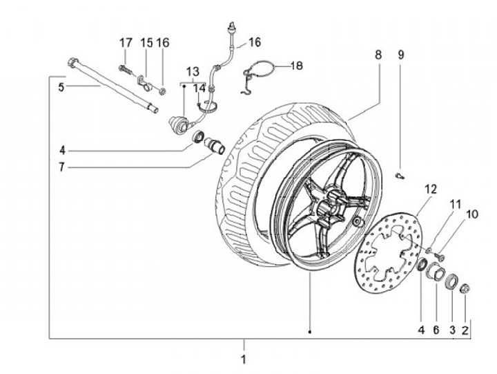 Framhjulsaxel -PIAGGIO- NRG Power (ZAPC45), Gilera Runner (från 2006) (ZAPC46, ZAPM46)