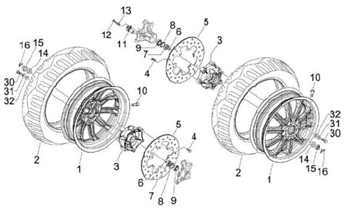 Framhjulsnav -PIAGGIO- Vespa GTS 125 (ZAPMA3100, ZAPMA3200, ZAPMA3700), Vespa GTS 150 (ZAPMA3200, ZAPMA3100), Vespa GTS 250 (ZAPM45100), Vespa GTS 300 (ZAPM45200, ZAPM45202, ZAPMA3300), Vespa GTS HPE 300 (ZAPMA3600, ZAPMD310), Vespa GTS Super 125 (ZAPM45
