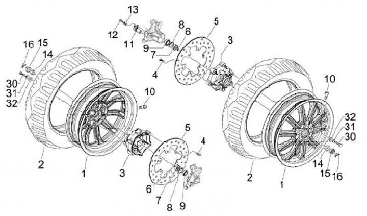 Framhjulsnav -PIAGGIO- Vespa GTS 125 (ZAPMA3100, ZAPMA3200, ZAPMA3700), Vespa GTS 150 (ZAPMA3200, ZAPMA3100), Vespa GTS 250 (ZAPM45100), Vespa GTS 300 (ZAPM45200, ZAPM45202, ZAPMA3300), Vespa GTS HPE 300 (ZAPMA3600, ZAPMD310), Vespa GTS Super 125 (ZAPM45