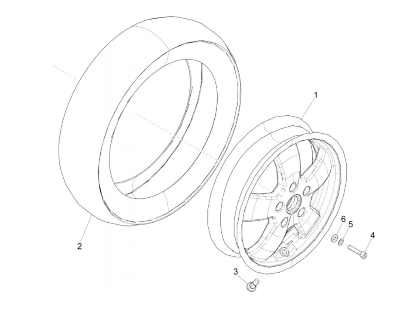 Fälg -PIAGGIO GTS125/300 Super Sport, HPE, Supertech, Notte - svart glansig, (3.00x12) - 5 ekrar - passar Vespa GT, GTL, GTS, GTV, HPE 125-300cc - fram (alla år) och bak (2014-2016)