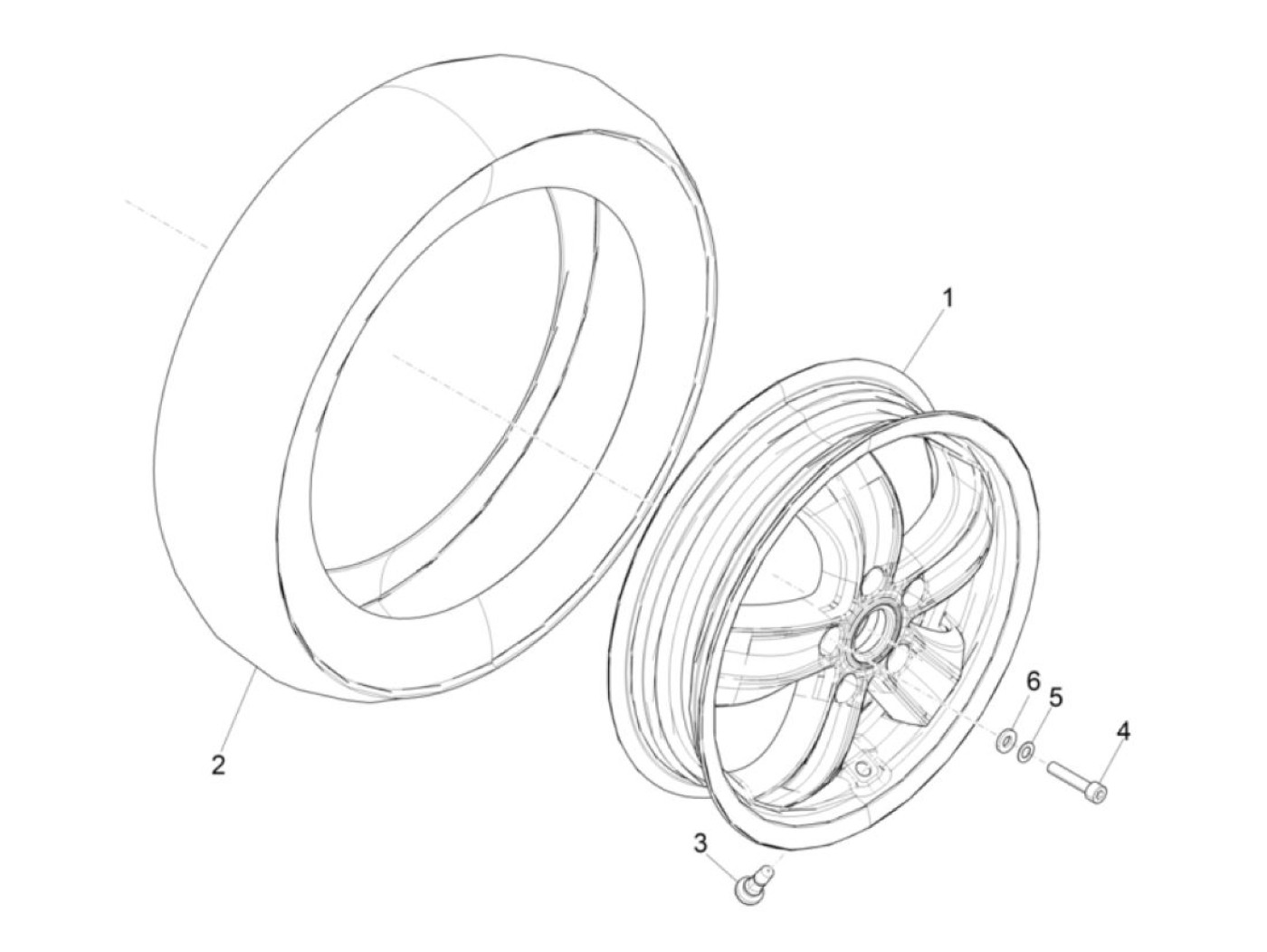 Hjul -PIAGGIO, GTS V2021- GTS125/300 Super Sport, HPE, Supertech, Notte - svart glansig, (3.00x12) - 5 ekrar - passar Vespa GTS, HPE 125/300cc - fram