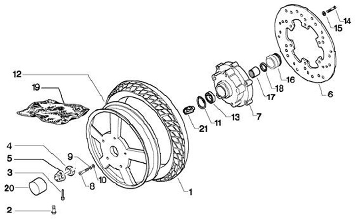 Fälg -PIAGGIO GTS125-300 - silver, (3.00x12) - 5 ekrar - passar Vespa GT, GTL, GTS, GTV 125-300cc - fram (alla år) och bak (2014-2016)