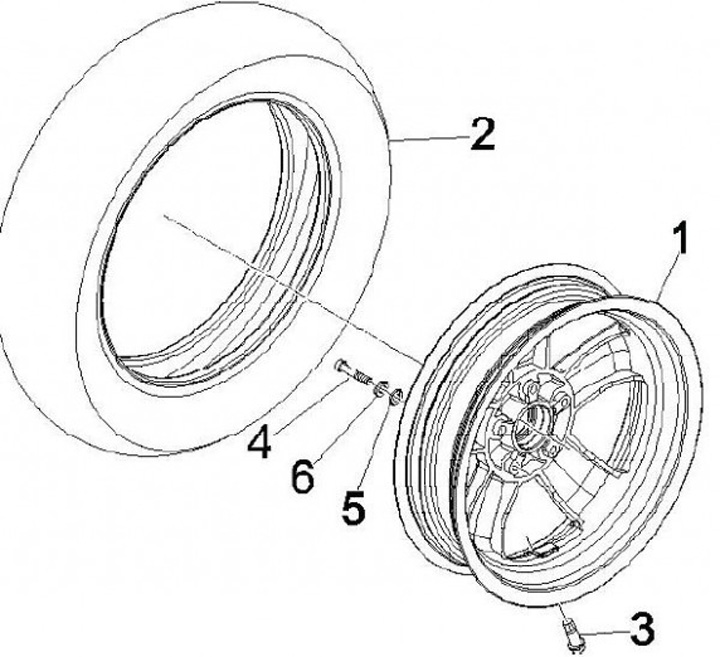 Hjul -PIAGGIO GTS Super 125-300 - svart matt med polerad fälg, (3.00x12) - 5 ekrar - passar Vespa GT, GTL, GTS, GTV, HPE 125-300cc - fram (alla år) och bak (2014-2016)