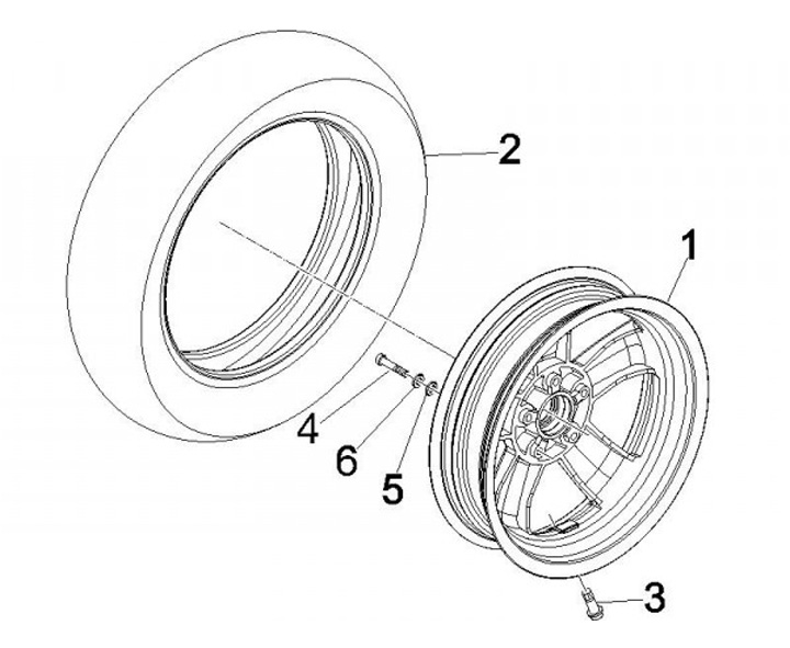 Fälg -PIAGGIO GTS125-300 - silver, (3.00x12) - 5 ekrar - passar Vespa GT, GTL, GTS, GTV 125-300cc - fram (alla år) och bak (2014-2016)