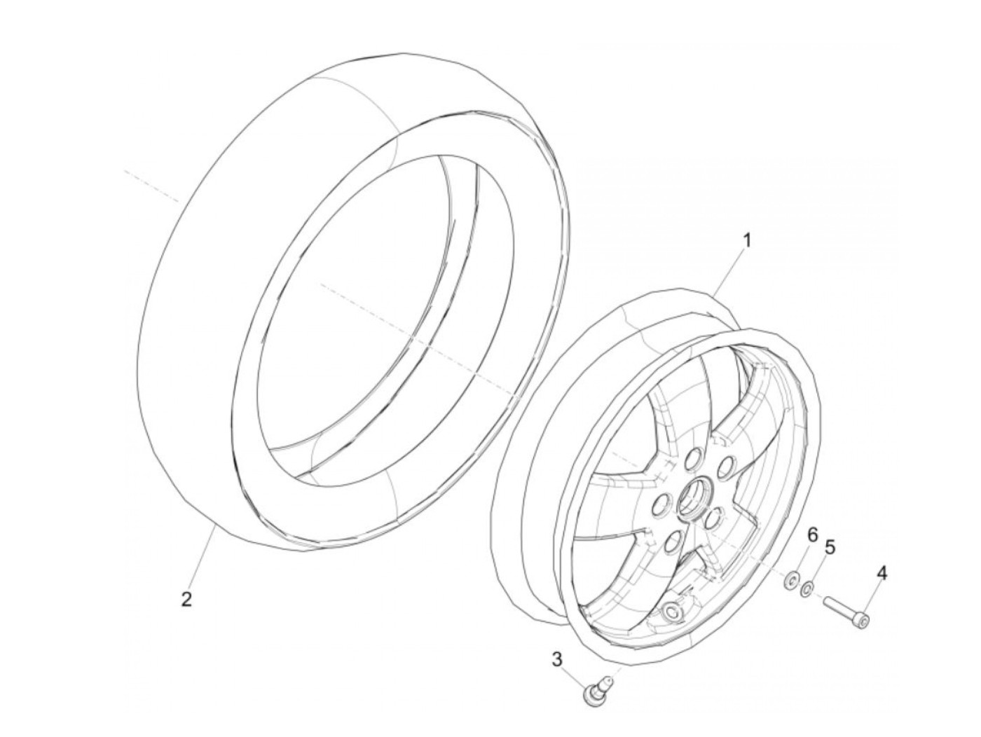 Fälg -PIAGGIO GTS125/300 Super Sport, HPE, Supertech, Notte - svart glansig, (3.00x12) - 5 ekrar - passar Vespa GT, GTL, GTS, GTV, HPE 125-300cc - fram (alla år) och bak (2014-2016)